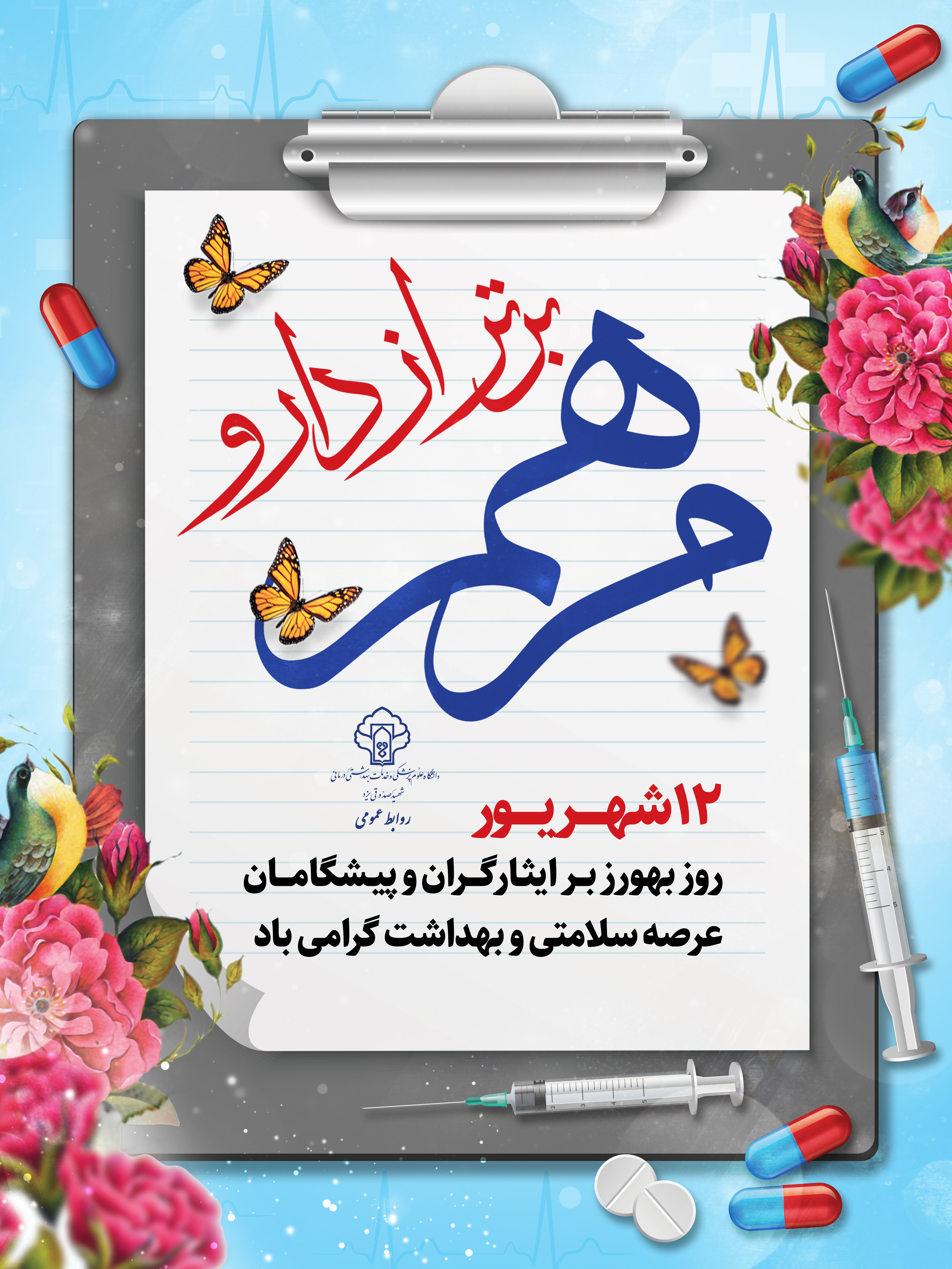 با توجه به اینکه ۱۲ شهریور ماه به پاس گرامی‌داشت فعالیت‌ها و خدمات ارزنده شما سربازان خط مقدم حوزه بهداشت، به نام روز بهورز نامگذاری گردیده است ضمن عرض تبریک این روز مبارک به محضر شما بهورزان ارجمند، سلامتی، سعادت و موفقیت روز افزونتان را در عرصه خدمتگزاری از پروردگار یگانه خواستارم.