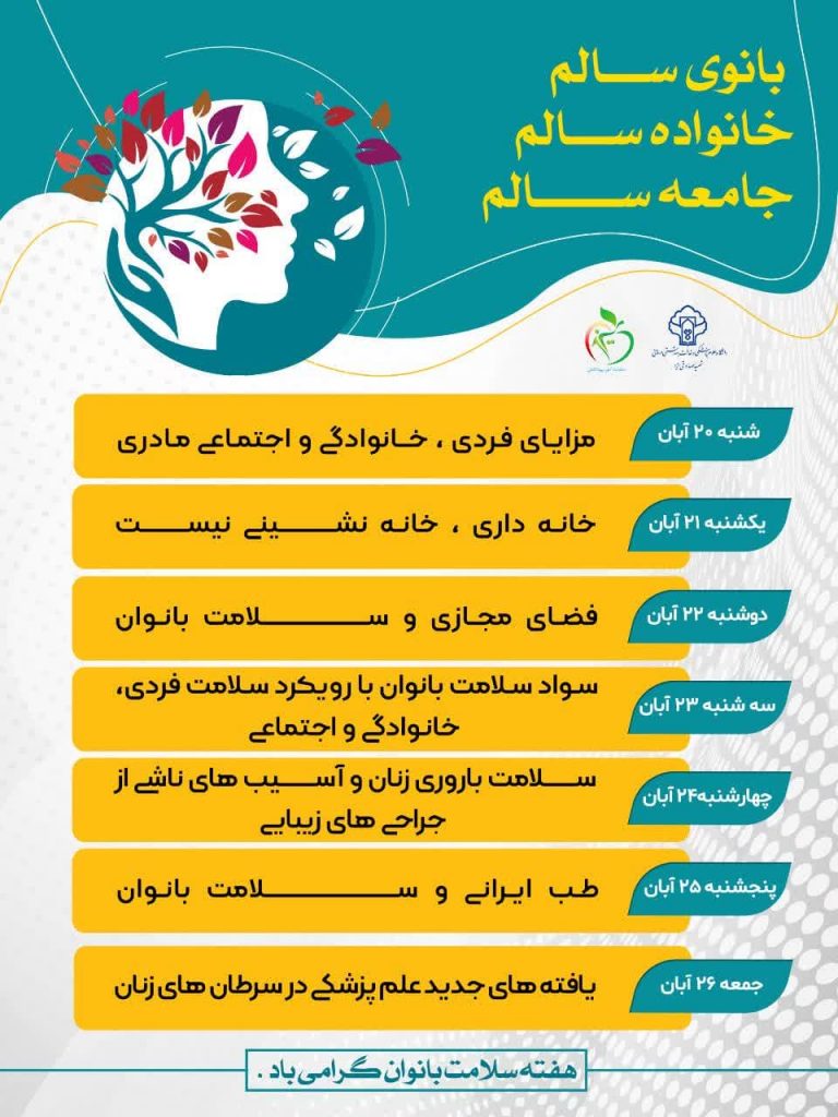 روز شمار هفته سلامت بانوان ایرانی بشرح ذیل میباشد: