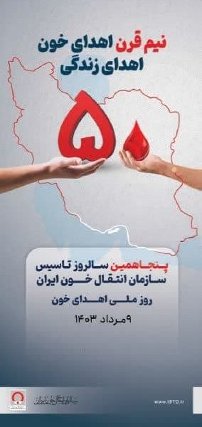 🔹️ نیم قرن از تاسیس سازمانی میگذرد که انسانها در آن با اهدای خون، زندگی میبخشند. به مناسبت فرارسیدن پنجاهمین سالگرد تاسیس سازمان انتقال خون ایران، ضمن تبریک به تمامی همکاران پرتلاش این سازمان، مراتب قدردانی خود را از خدمات ارزشمند ایشان در ارتقای سطح سلامت جامعه و تامین خون سالم برای بیماران نیازمند ابراز مینمایم.