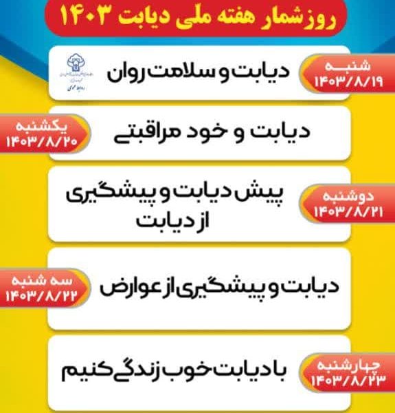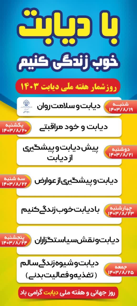 هفته ملی دیابت فرصتی است تا یک بار دیگر به اهمیت کنترل و مدیریت این بیماری توجه کنیم.
