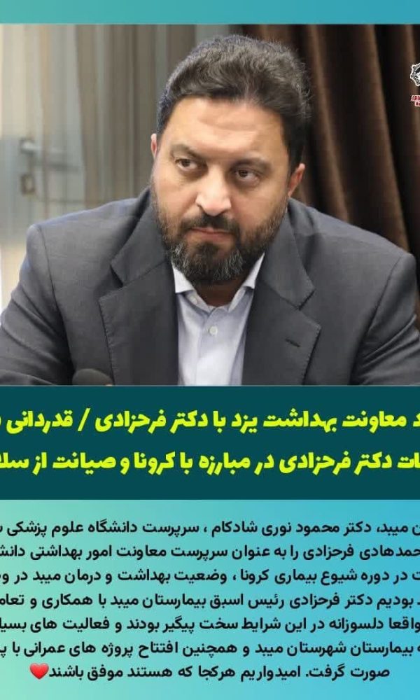 مسیر جدید معاونت بهداشت یزد با دکتر فرحزادی/ قدردانی شهرستان میبد از خدمات دکتر فرحزادی در مبارزه با کرونا و صیانت از سلامت جامعهکارشناس روابط عمومی21 آذر 1403به گزارش آرمان میبد، دکتر محمود نوری شادکام ، سرپرست دانشگاه علوم پزشکی ... اطلاعات بیشتر
