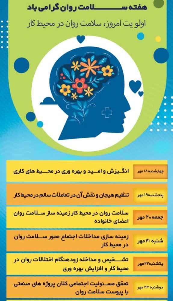 روز جهانی بهداشت روان و هفته ملی سلامت روانکارشناس روابط عمومی28 مهر 1403متن پیام رئیس مرکز بهداشت استان به مناسبت فرارسیدن روز جهانی بهداشت روان ... اطلاعات بیشتر