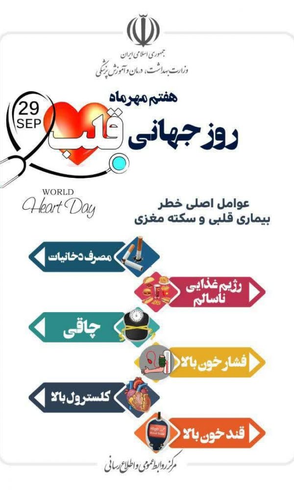 نامگذاری هفتم مهرماه(۲۹ سپتامبر) به عنوان روز جهانی قلبروابط عمومی معاونت بهداشتی8 مهر 1402رئیس گروه پیشگیری و مبارزه با بیماری ها ی غیر واگیر معاونت بهداشتی ... اطلاعات بیشتر